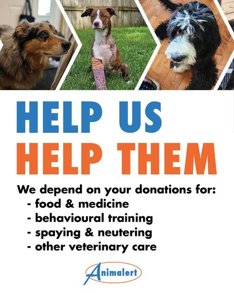 You can send a cheque made out to "Animalert" and receive a tax receipt (for donations over $20) in the mail.